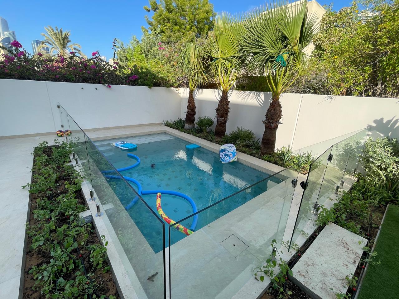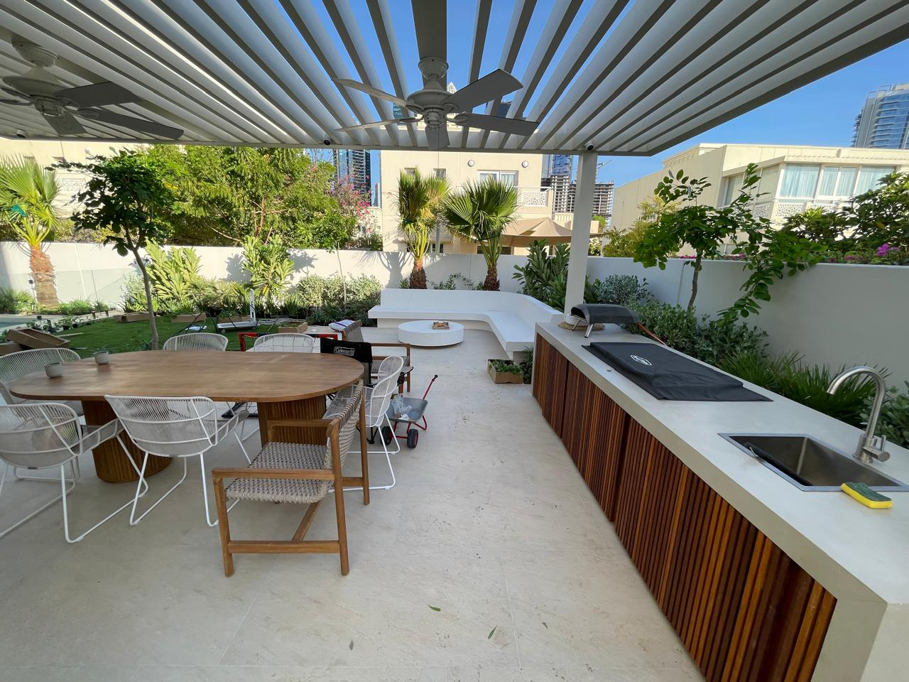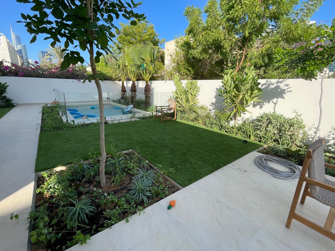 Today, it boasts a beautifully integrated modern swimming pool that adds both elegance and leisure to the setting — the perfect backdrop for relaxing afternoons or lively BBQ gatherings. The contemporary bench seating and thoughtfully designed shade structure not only elevate the garden’s aesthetic appeal but also enhance its functionality, making it a versatile and comfortable space for entertaining or simply unwinding in style.