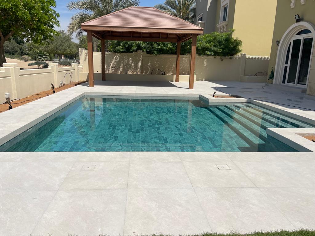 Made from plain artificial grass to a splendid garden – the outdoor space is now the perfect place for relaxation and refreshment. Th swimming pool is designed just right. After dipping into the pool, you can stay in the gazebo where you can rest and just relax. The plants compliment the whole garden and give you a refreshing feeling.